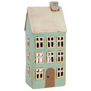 Village Pottery Small Blue Cornish Cottage House Tealight Candle Holder