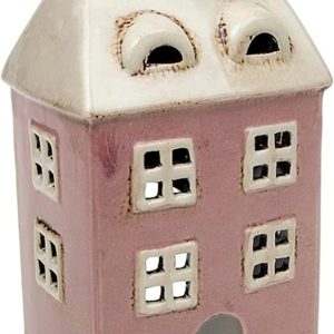 Pottery Village – Tall Pink House Candle Tealight Holder