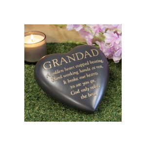 Graveside Dark Grey Memorial Heart Stone Plaque – Dad