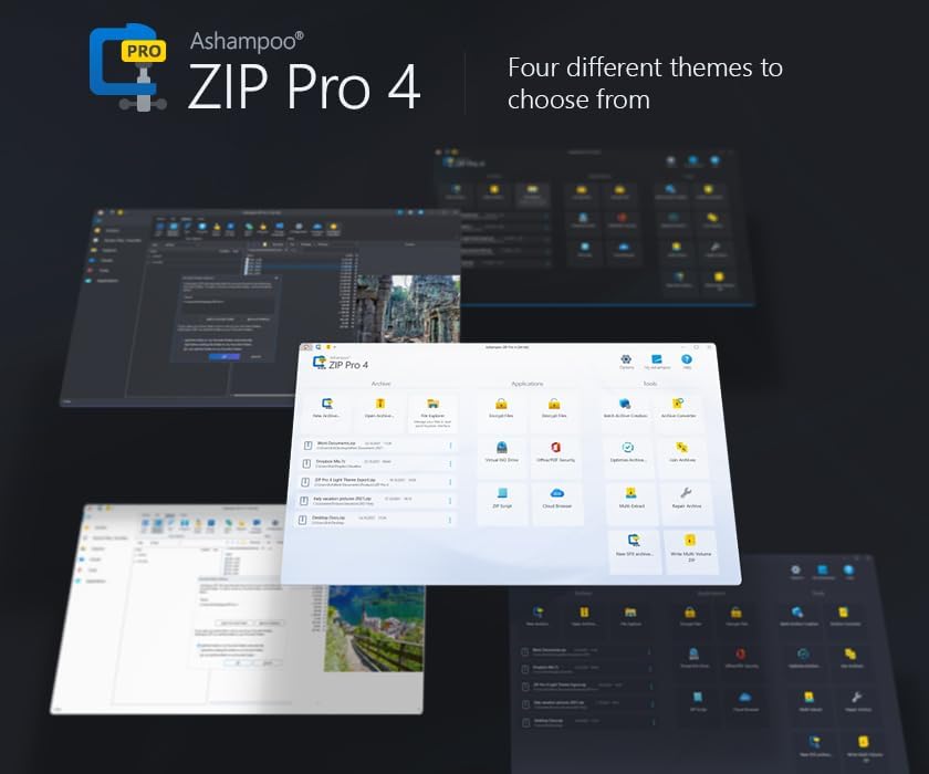 Ashampoo ZIP Pro 4 is not just mere ZIP software but a complete suite to compress, extract, send and encrypt your files. With support for over 60 formats, ZIP Pro 4 is the universal compression solution for all file types. Process your archives comfortably with full multi-core support and the world’s fastest compression codecs.