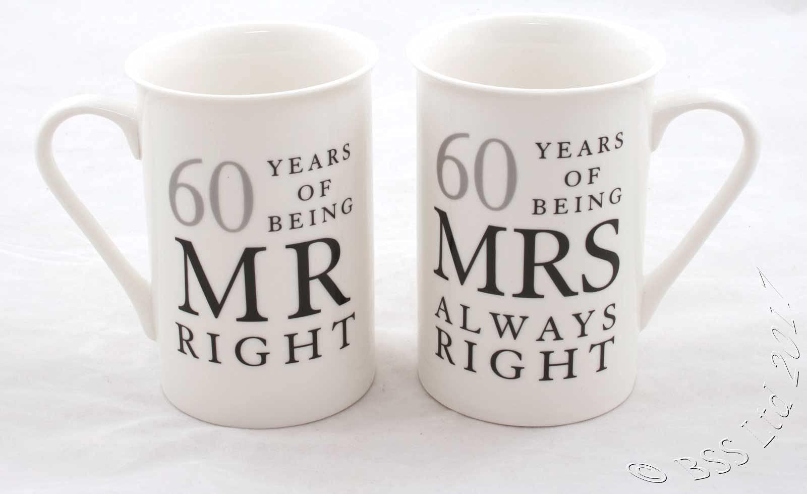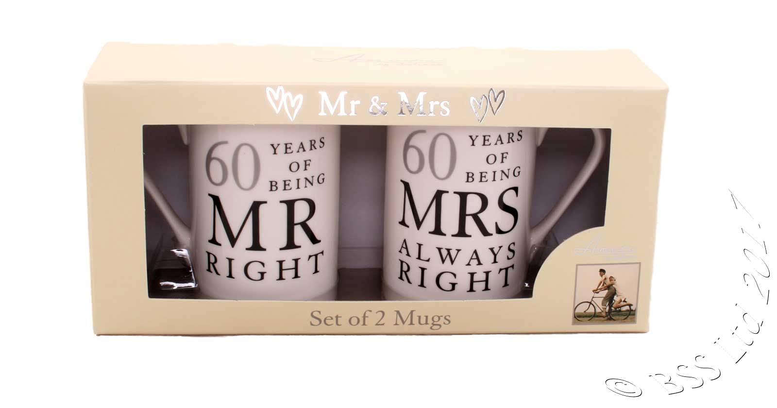 Mr Right Mrs Always Right 60th Diamond Anniversary Mugs Set by Amore Boxed