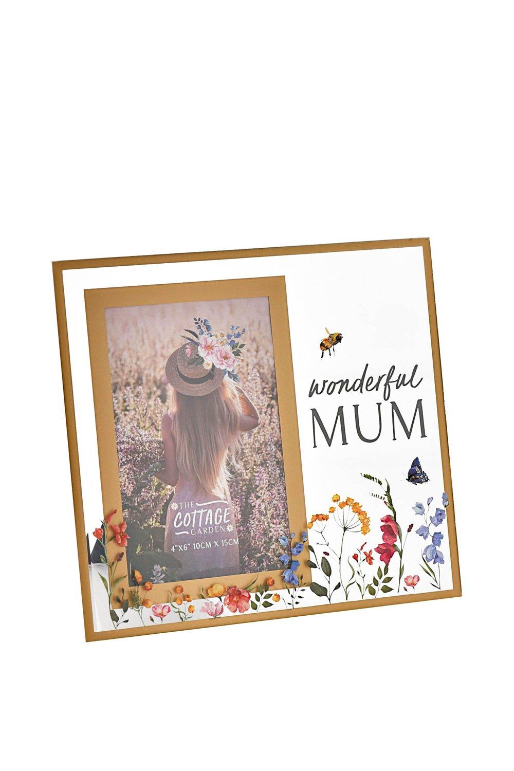 A ‘Mum’ glass photo frame from The Cottage Garden by Celebrations®. This magnificently presented photo frame showcases beautifully painted wildflowers upon its clear glass, complete with ‘Wonderful Mum’ title and gold coloured edging around both the outer frame and its portrait aperture. Its personalised touches are sure to bring a smile to the face of your much-loved mother.